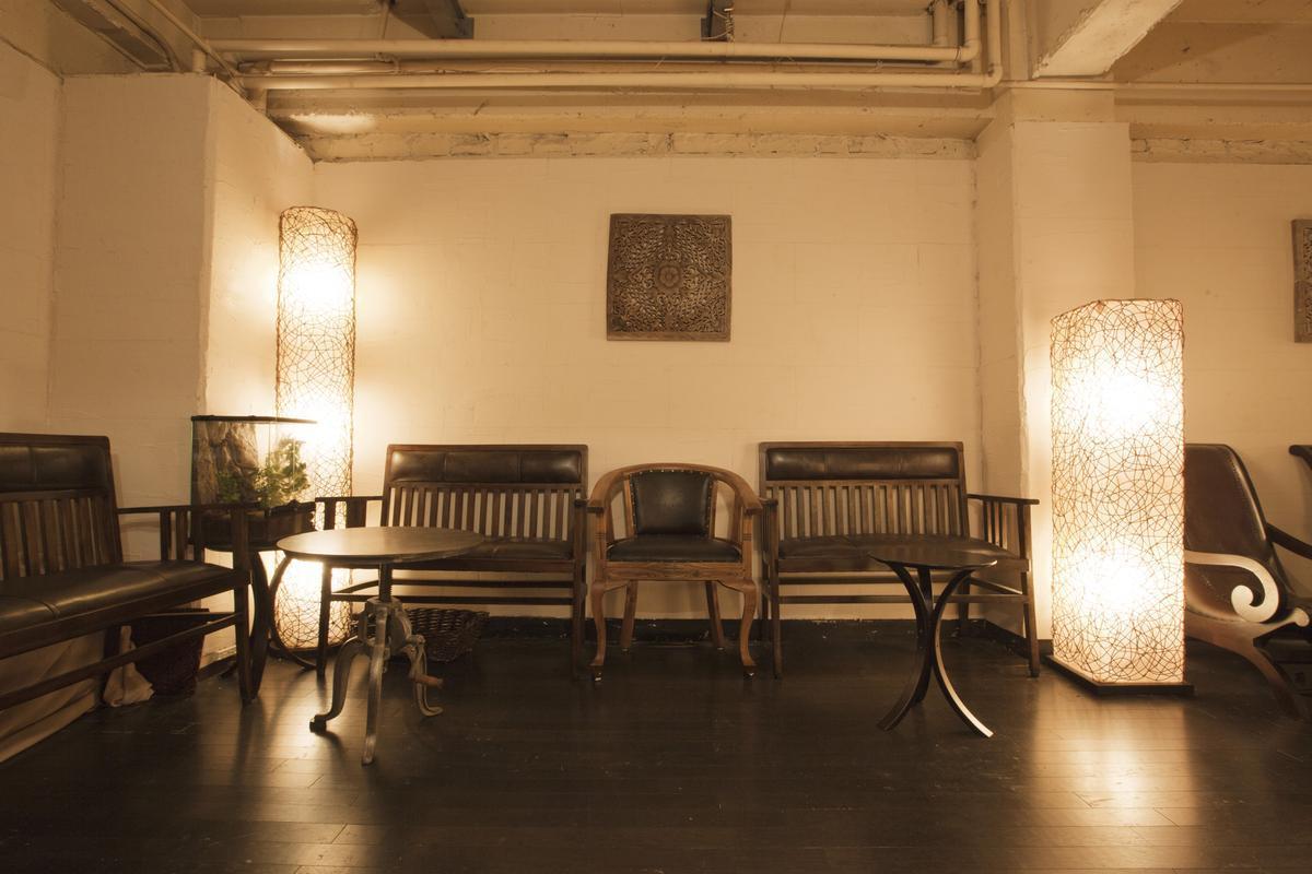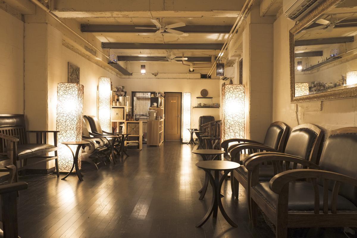 雑居ビルの階段を4階まで登ると突如出現する、チーク材を使用した家具が並ぶインドネシア風インテリアの店内。同ビル5階はゴシック調のインテリアで仕上げています。